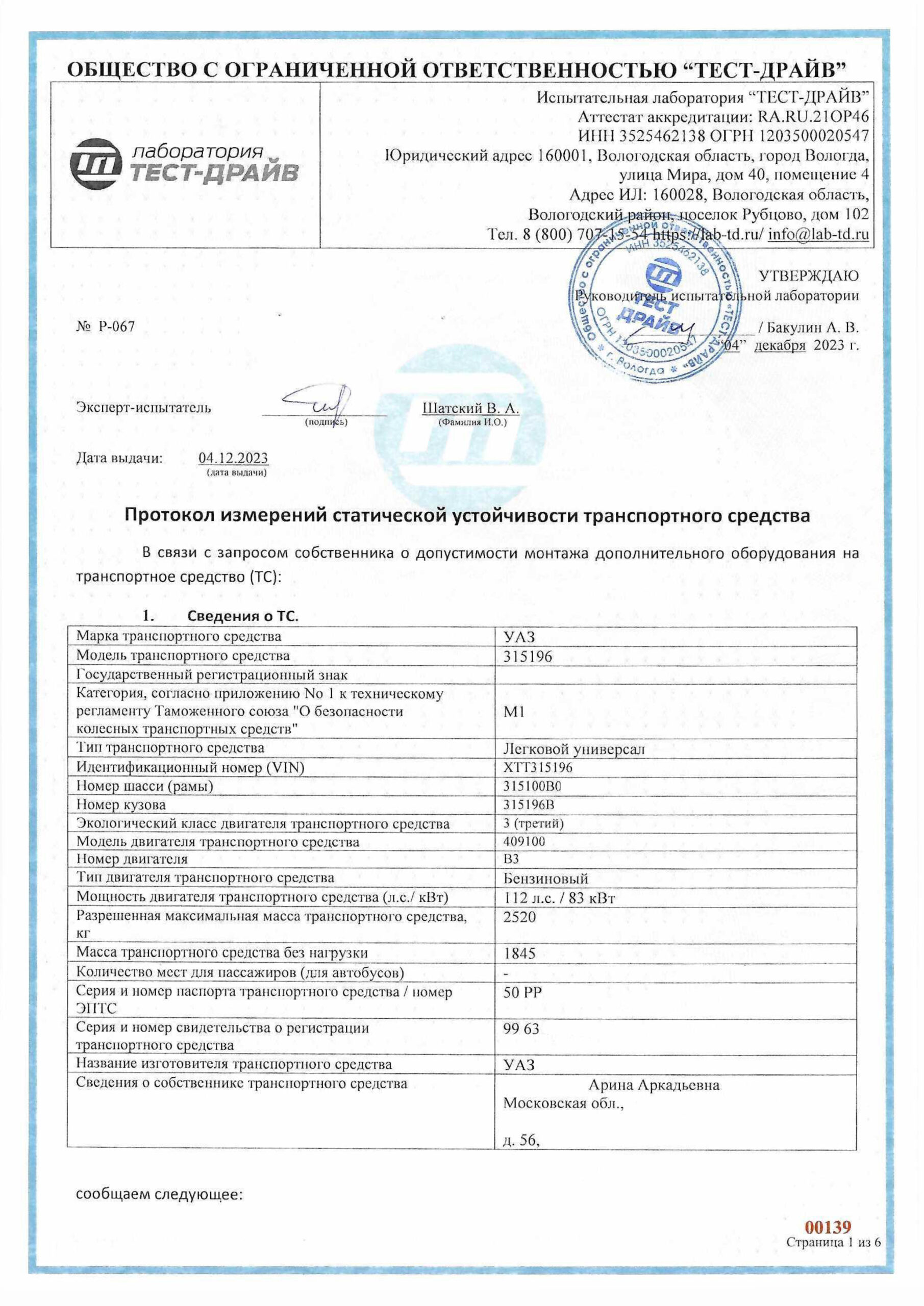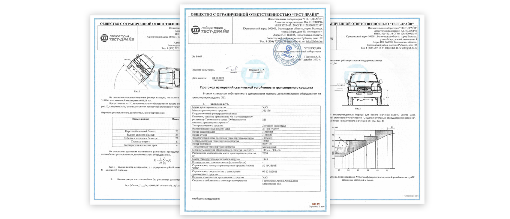Расчет поперечной статической устойчивости — это официальное заключение, подтверждающее, что модернизированное или переоборудованное транспортное средство сохраняет безопасный угол опрокидывания. Иными словами, документ показывает, что что внесенные изменения не ухудшили устойчивость и автомобиль остается безопасным для эксплуатации.