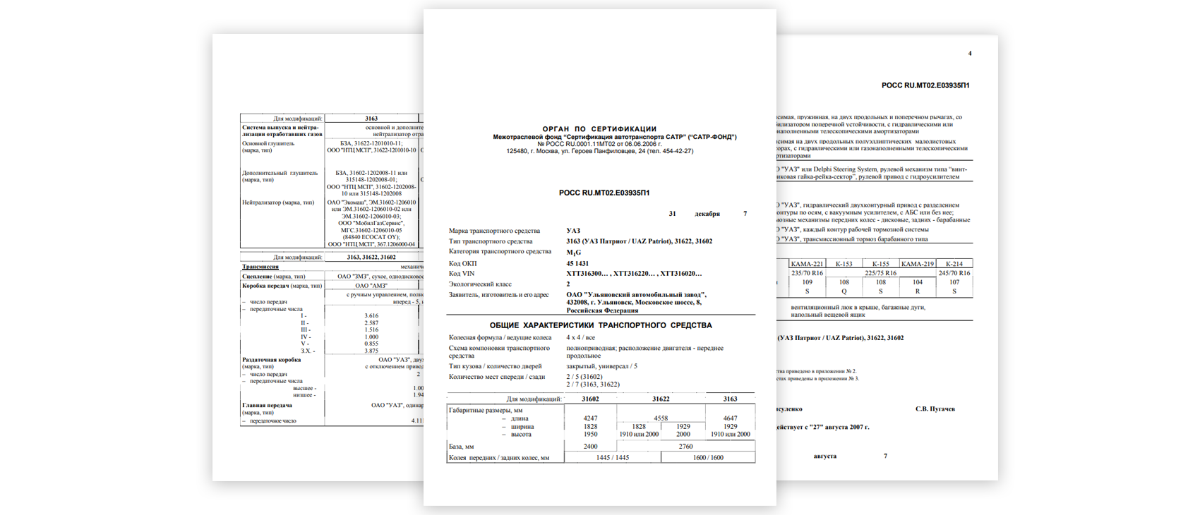 После того, как все лабораторные испытания продукции и производственный контроль успешно пройдены, а документы проверены органом сертификации, составляется проект документа и согласовывается с производителем автомобилей. Затем следует его окончательное утверждение и регистрация в Росстандарте.